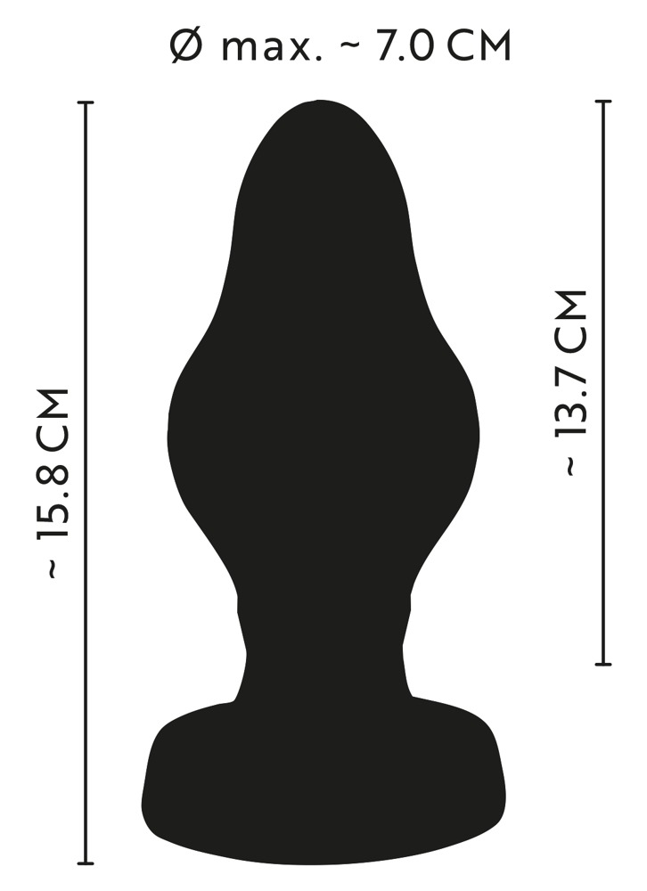 Total length 15.8 cm, insertion length 13.7 cm, Ø max. 7 cm, taper Ø 3.5 cm.
