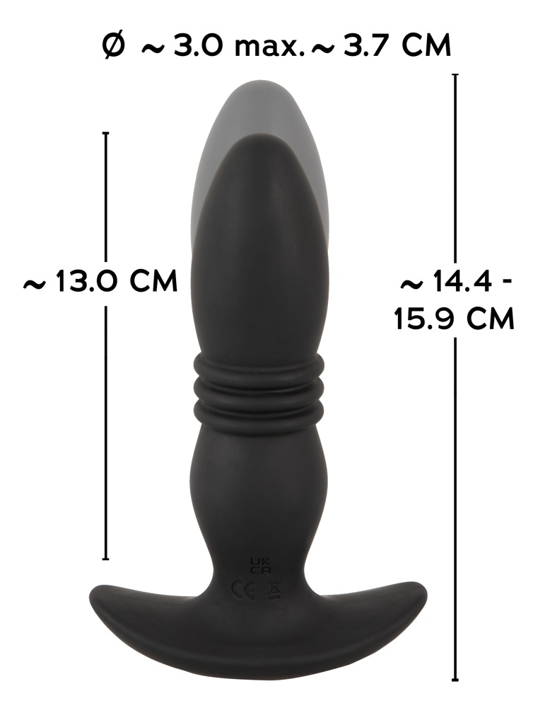 Vibro-butt plug RC Thrusting Massager from ANOS with a powerful thrust function. For intense anal stimulation with a soft, tapered tip that keeps on stimulating the prostate directly with its thrusts. The vibrations can also be felt on the perineum when wearing the plug.