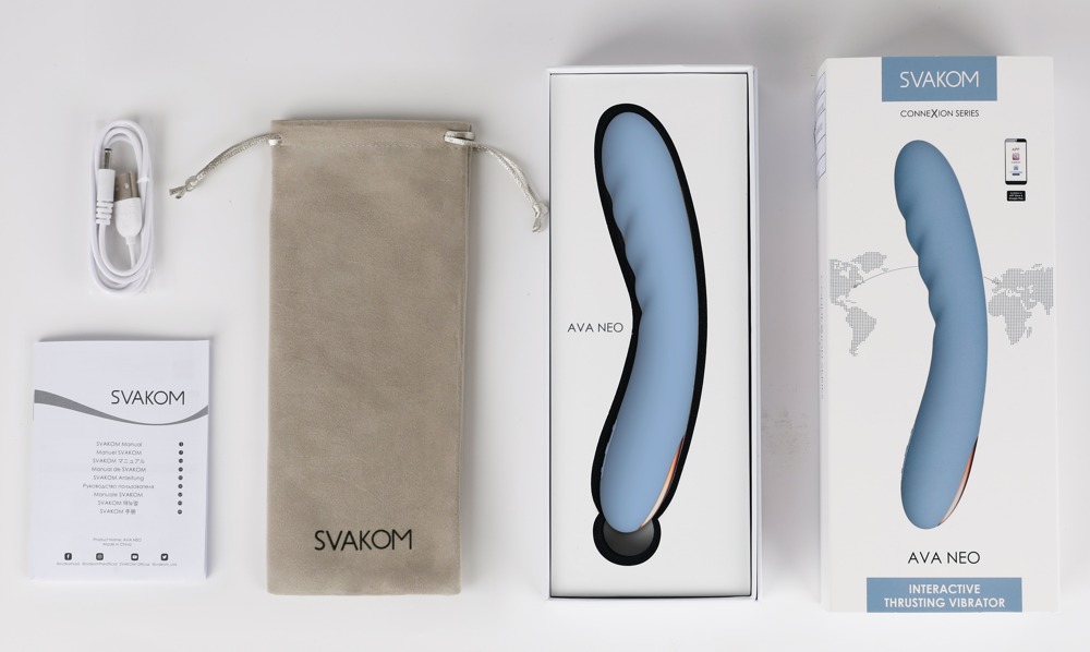 Stimulation-curled Ava Neo thrust vibrator from Svakom with energetic thrust function for deeply intense pampering. Soft and silky, the flexible silicone vibrator nestles perfectly in the hand and glides over the skin and into intimate depths as if by itself. Also suitable for fun in the bath or shower, because the Ava Neo is waterproof.