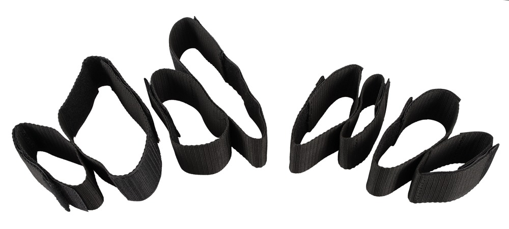A 4-piece bondage set for hot erotic games. The package contains 2 restraints for the elbows & knees and 2 restraints for the wrists & ankles. The restraints have no padding and are made out of sturdy belt material. The convenient hook & loop fasteners make the restraints fit perfectly and allow for various bondage positions. Always a perfect fit.