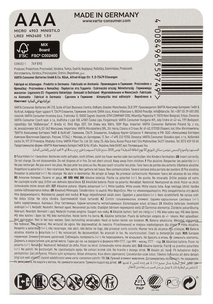 Home > Speeltjes > Accessoires > Batterijen > Battery Varta AAA 10×4