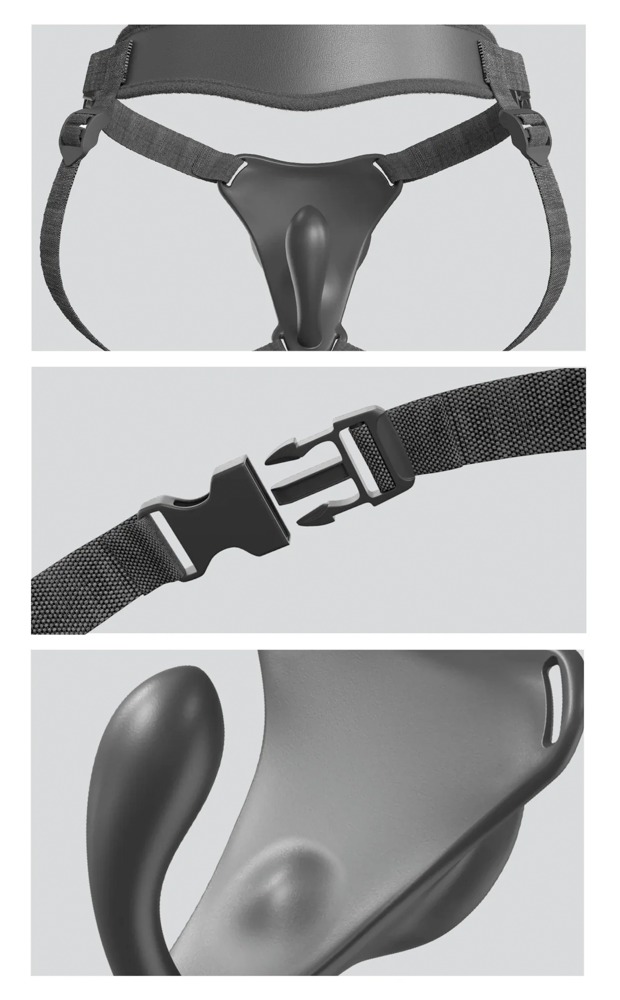 The simple strap-on system has an anatomically curved docking plate for attaching suction cup dildo or vibrator (not included). The dildo/vibrator is held securely in position (Push & Play). The padded docking plate distributes the pressure evenly over the pelvic area so that any unpleasant pressure is avoided. In this Pro version, the back strap is softly padded for even greater comfort and the docking plate is made of silicone. Everything adapts perfectly to the anatomy and movements. The sturdy, wide straps are adjustable with plastic sliders for a firm and comfortable fit.