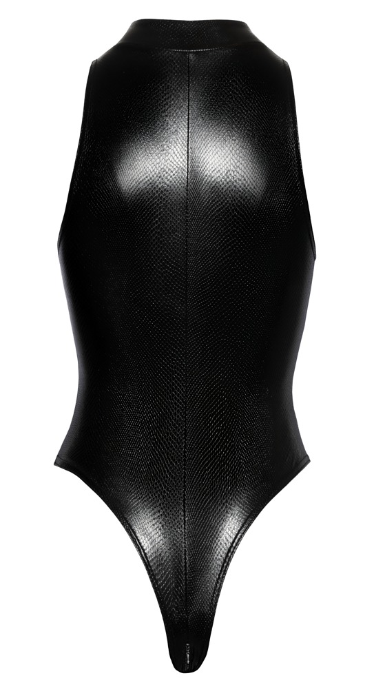 The skin-tight body from Noir has a shiny matte snakeskin pattern and fits like a second skin. It is also soft and stretchy and this means that it is extremely comfortable to wear. The high legs emphasise the legs and buttocks in a sexy way. The 3-way, metal zip is both practical and erotic. The zip starts from the small stand-up collar, goes over the crotch at stops at the top of the buttocks – it can be used to open and close the body in a variety of ways.