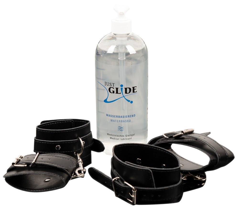 Comes with handcuffs and ankle cuffs as well as 1 litre of lubricant!
