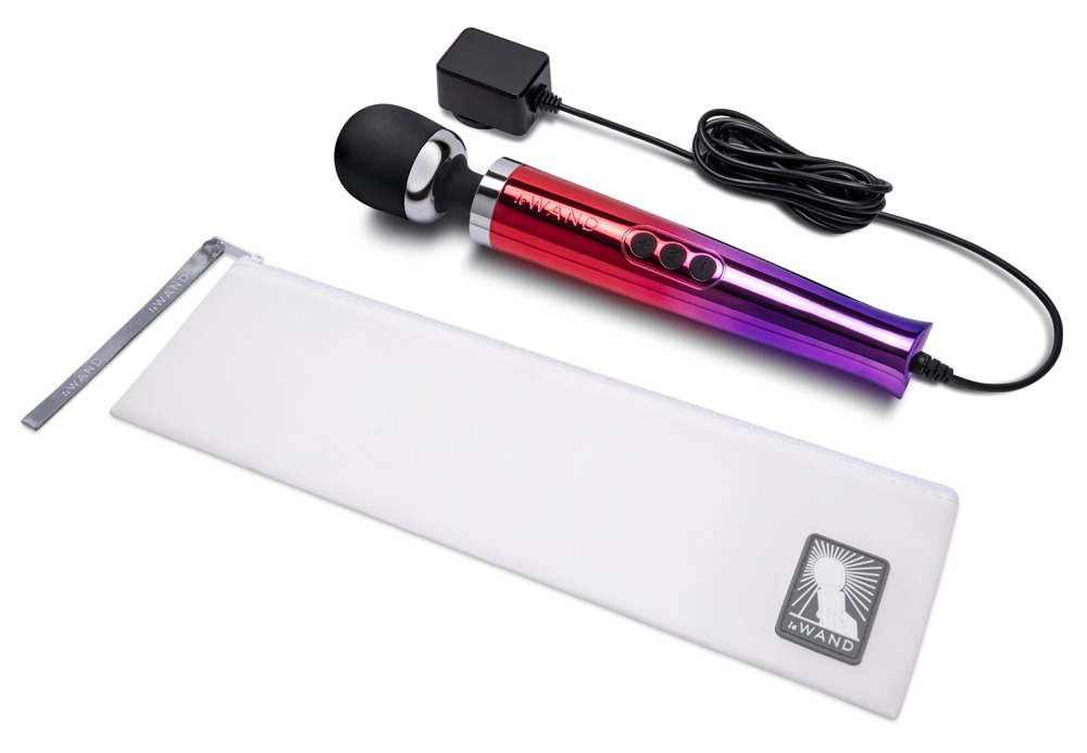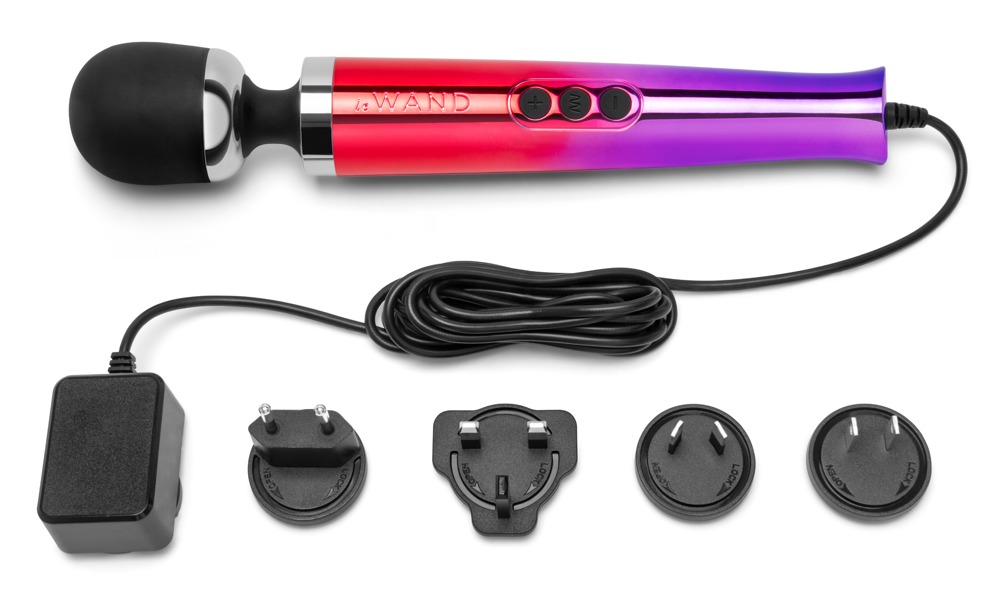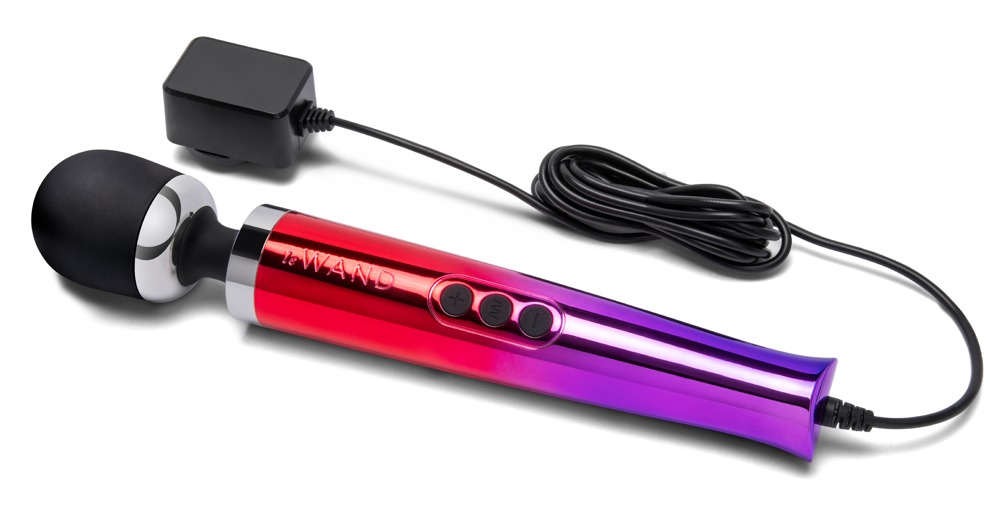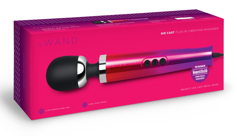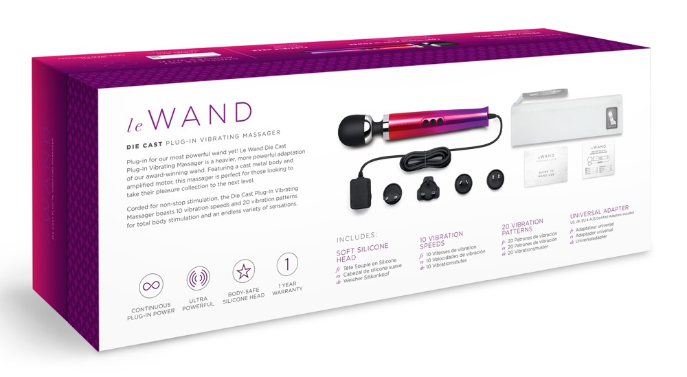 Wired luxury massage wand Diecast Plug-In by le Wand for intense massage pleasure with non-stop power. In the classic wand design – but more compact, slightly smaller and much easier to handle! A true eye-catcher with its die-cast metal case. 20 vibration modes in 10 intensities provide individual massage pleasure and can be easily controlled with the 3-button control on the handle.