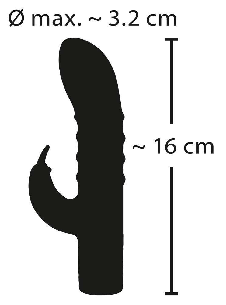 Complete lenkt 16 cm. Insertion depth 9.9 cm. Ø 3.2 cm. Silicone, PU, ABS.