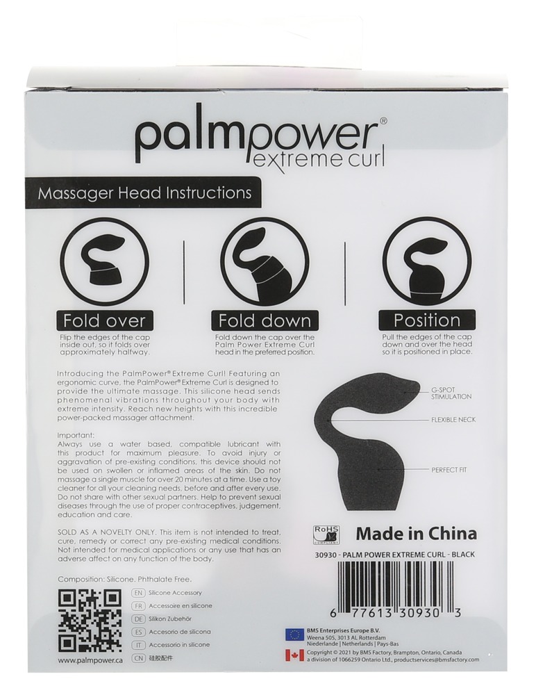 The flexible extreme curl silicone attachment from palmpower® can be easily attached to the palmpower® extreme massage wand's massage head. The combination of sensational power from the massager and the attachment's stimulating design means that it's perfect for an amazing G-spot massage.