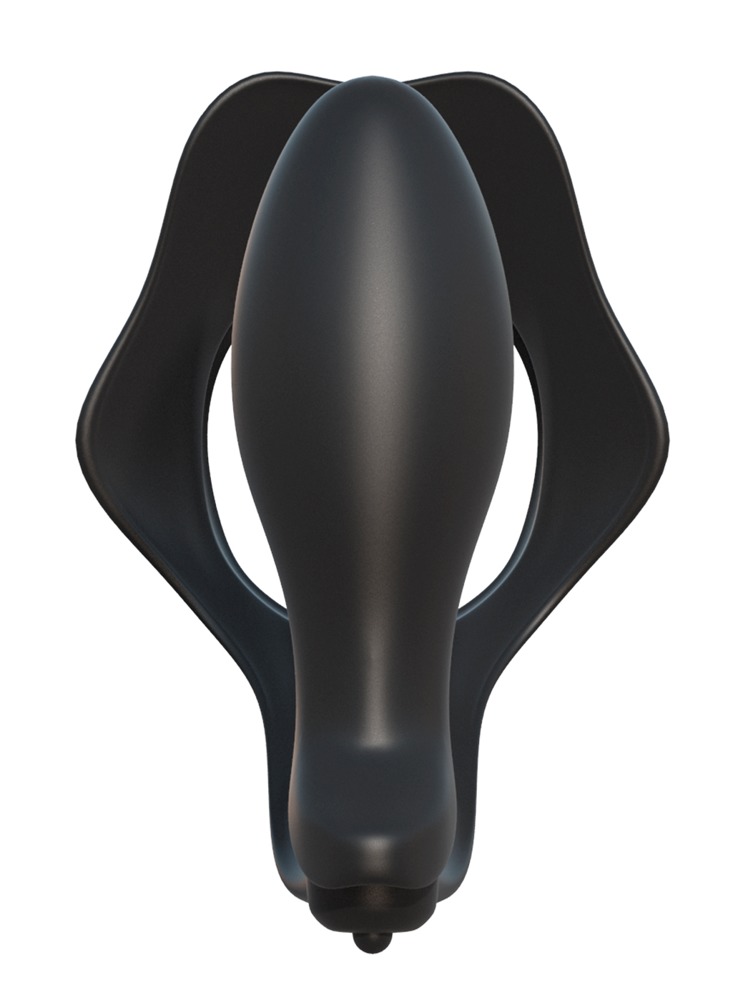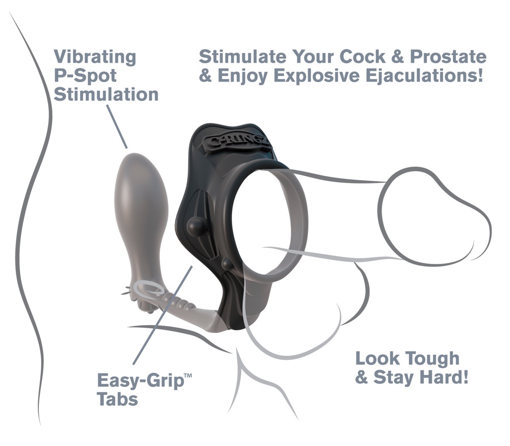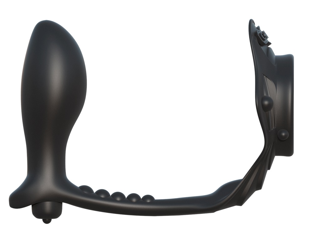 Stronger erections AND prostate stimulation at the same time - that's exactly what this combined cock ring and plug is here for. Cock ring and plug are connected by a narrow bar. The ring just has to be slipped over the penis to increase hardness, while the vibrating plug stimulates the anal pleasure center. A combination for truly powerful, explosive orgasms! Please order batteries separately (1 x AAA).