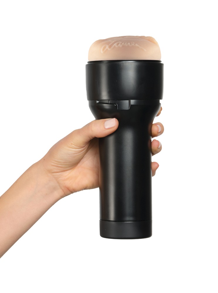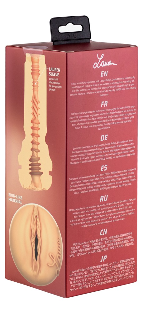 Feel Lauren Phillips masturbator from Kiiroo with original moulded vagina opening by adult star Lauren Phillips and signed with her autograph next to the labia. The very diverse textured interior comes very close to Lauren's tight vagina and provides an intense massage during a handjob. The sleeve made of skin-like, soft material can be easily removed from the non-slip, discreet casing for cleaning.