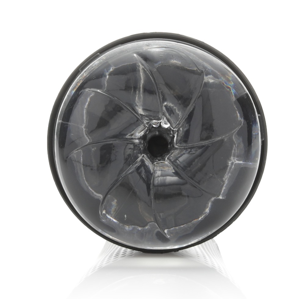 Transparent masturbator with dotted, grooved sleeve and tight anal opening in a black case. Complete length and insertion length 20 cm. Flexible diameter. Material: TPE. Lubricant sample and instructions included.