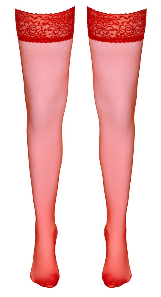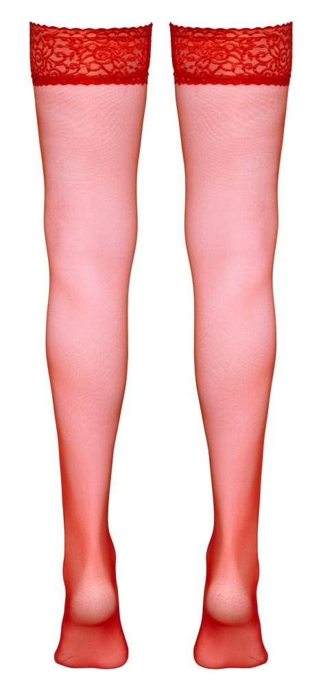 Hold-up stockings with a 7 cm wide lace top part. A red hot must-have for amazing appearances. 17 denier. Oekotex certified.