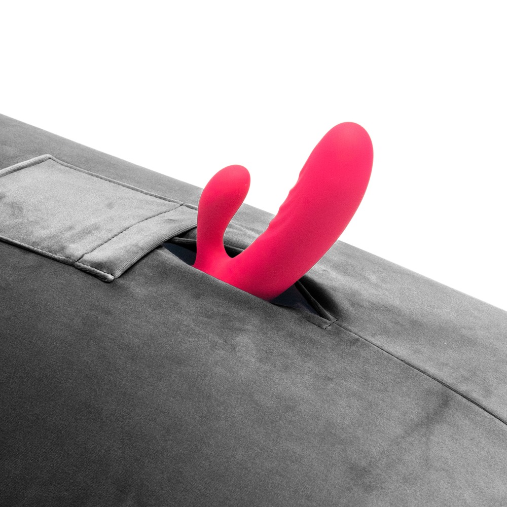 The long sex cushion Humphrey from Liberator has a space for any normal vibrator/dildo/massage wand and a small inner pouch for a clitoral vibrator/vibro-bullet. The toys just get inserted into the space and then they're kept securely in place so that the person using it can enjoy hot rides of pleasure. The large and sturdy cushion provides the right amount of support and is perfect for hands-free pleasure. Maximum satisfaction with minimum effort!