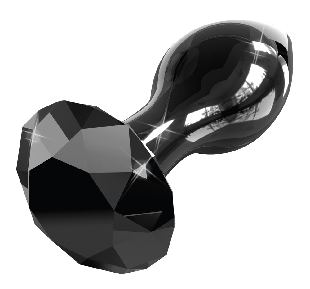 Cone-shaped black butt plug with a stopper made out of hand-blown glass. The stopper is in the shape of a diamond. Odourless, anti-allergenic and very hygienic it's really easy to clean – it can even be put in the dishwasher. Tip: to increase the pleasurable feeling even more, it can be warmed up in warm water or cooled down in the fridge. The item will last a lifetime if it's looked after properly.