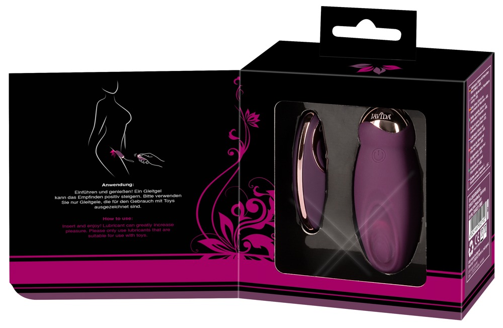 Rechargeable vibro-love ball RC Knocking Love Ball from Javida with a knocking function in the tip. The pulsating, knocking modes can be easily adjusted using the button on the remote control. The remote control's range is 5 metres which means that it can also be used by a partner – for surprising moments of pleasure and exciting control games. The vibro-love ball is also covered in soft silicone which feels great against the skin during wear and play. The vibro-love ball is also waterproof as well which means that it can be used in the bath or the shower. It can be recharged with the included USB cable. Includes batteries (CR2032) for the remote control.
