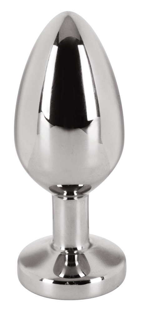 Silver-coloured, tapered butt plug with a clear rhinestone at the base. Total length 6 cm, Ø 2.5 cm. Weight: 122 g.