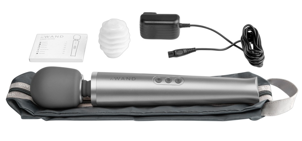The le wand massage wand has a large, flexible massage head that is made out of silicone. It provides sensual moments of pleasure with its 20 vibration modes and 10 intensities. It can be easily controlled at the push of a button. With a practical travel lock. Rechargeable with the included USB cable. Includes a storage bag.