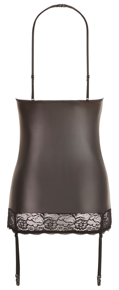 Open cup lingerie dress with beautiful lace inserts and a decorative rhinestone ring in the cleavage area. Stunningly shimmery, wonderfully stretchy and a perfect fit. Bra and suspender straps are adjustable.