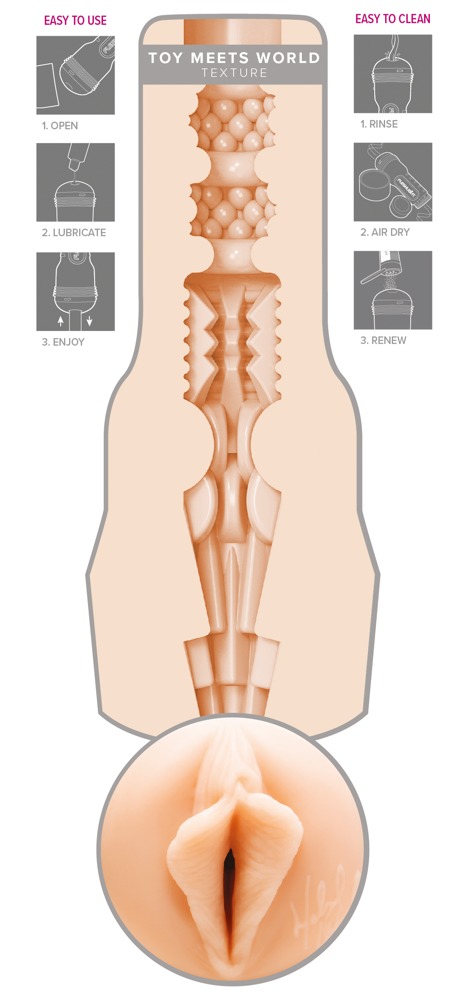 Masturbator Maitland Ward Toy Meets World from Fleshlight with an original replica of erotic star Maitland Ward's vagina hole. The various textures inside Maitland's tight vaginal canal feel amazing and are perfect for intense, orgasmic massages during a hand job. The sleeve is made out of soft, skin-like Superskin material. Maitland's signature is also next to the opening. The masturbator can be easily removed from the discreet, non-slip case for cleaning. There is also a lid for the case as well.