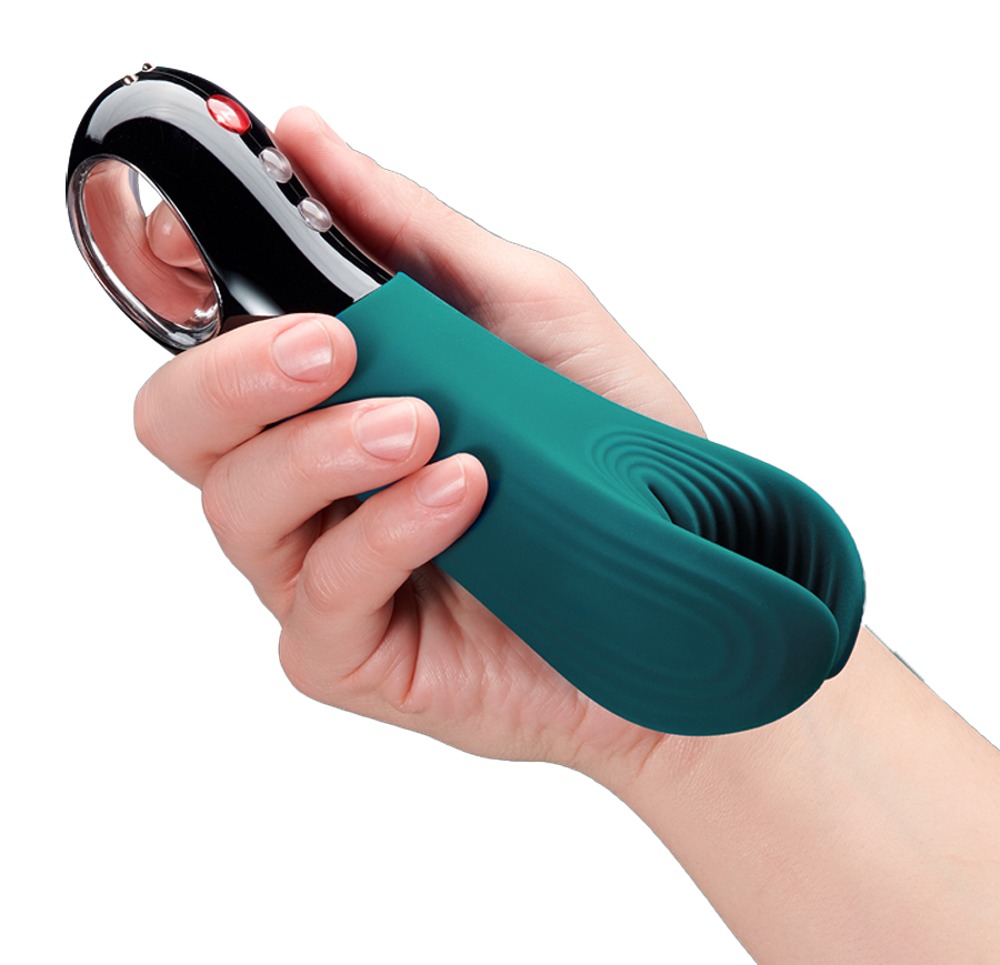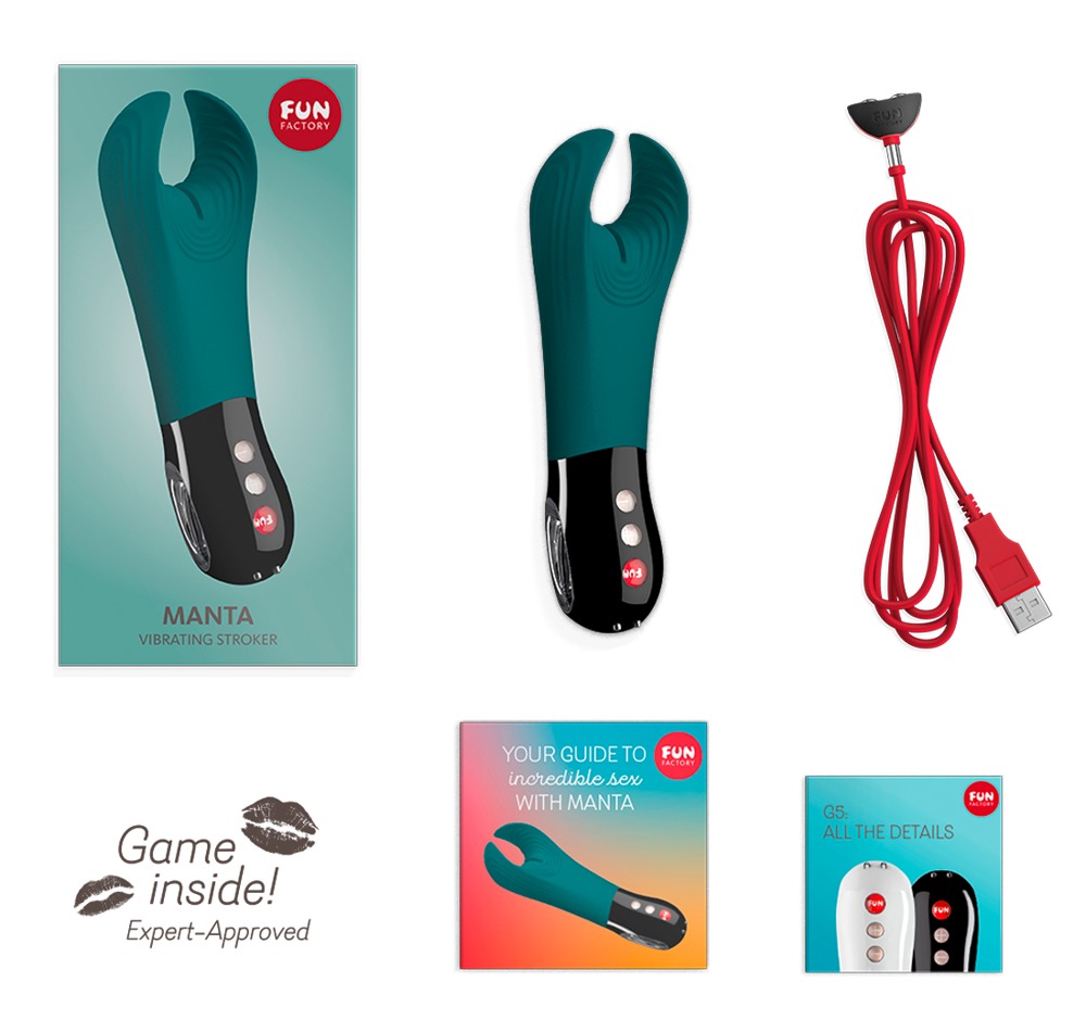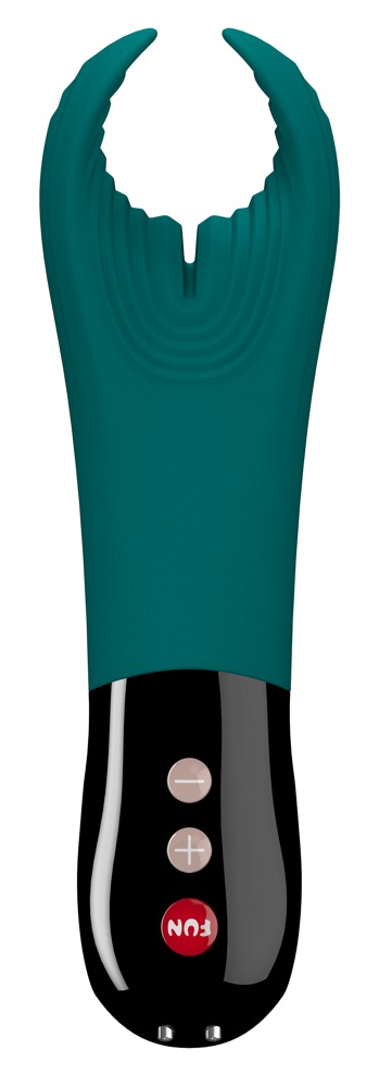 This vibro masturbator is the solution for all men who wish for a completely new men's toy - for themselves but also for their partner. It is velvety-soft and its shape resembles that of a manta ray. As a special highlight, it is shaped like pincers and consists of an indented semicircle and 2 wings that gently surround the penis shaft. The elaborate grooved texture on the inside of the wings makes sure that the lubricant stays in place - even during rapid up-and-down movements. The vibro masturbator has 12 thrilling vibration modes and is controlled with an intuitive three-button system.