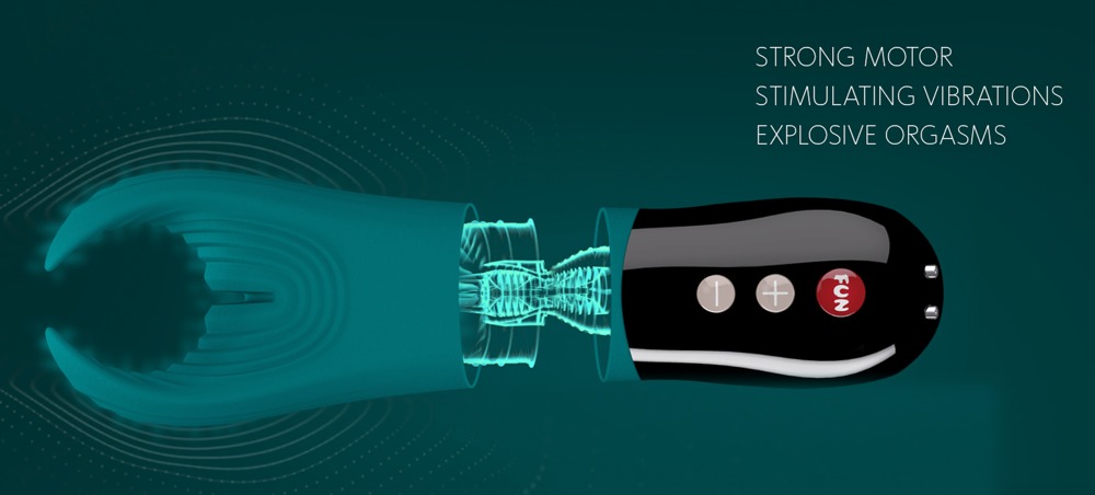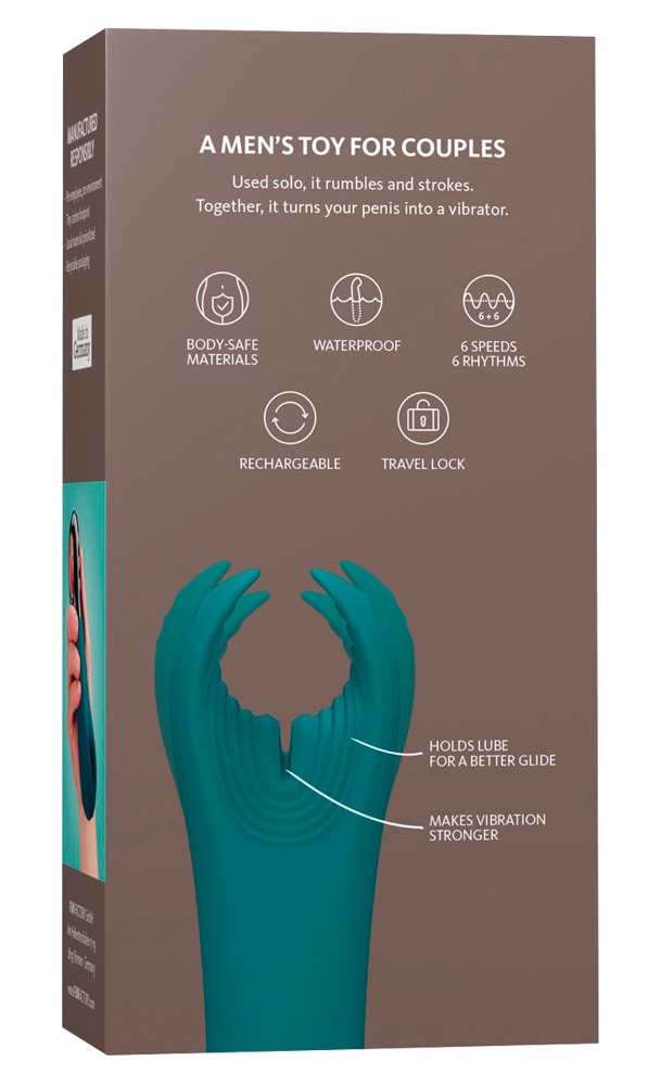 Along with its innovative design, the vibro masturbator also excels with its versatility: during solo sex the glans can be stimulated with the pincers or the vibro masturbator can be moved along the shaft for special pleasures. When the vibro masturbator is placed at the base of the penis it almost feels like a real blowjob. Just sit back and enjoy the unique combination of deepthroat and vibrations. Placed between the bodies, the vibro masturbator also offers a lot of fun for couples. That way, both of them can enjoy the hot vibrations. The masturbator can also be placed at the base of the penis during sex so his best asset becomes a living vibrator. Those who like it wet can also use the vibro masturbator in the bathtub. It is waterproof and perfect for fun in the bathroom.