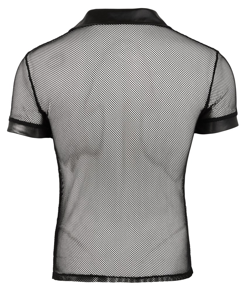 Masculine polo shirt with press studs that stop at the chest. The shirt is made out of a seductive mixture of net and wet look and is sure to grab everyone's attention.