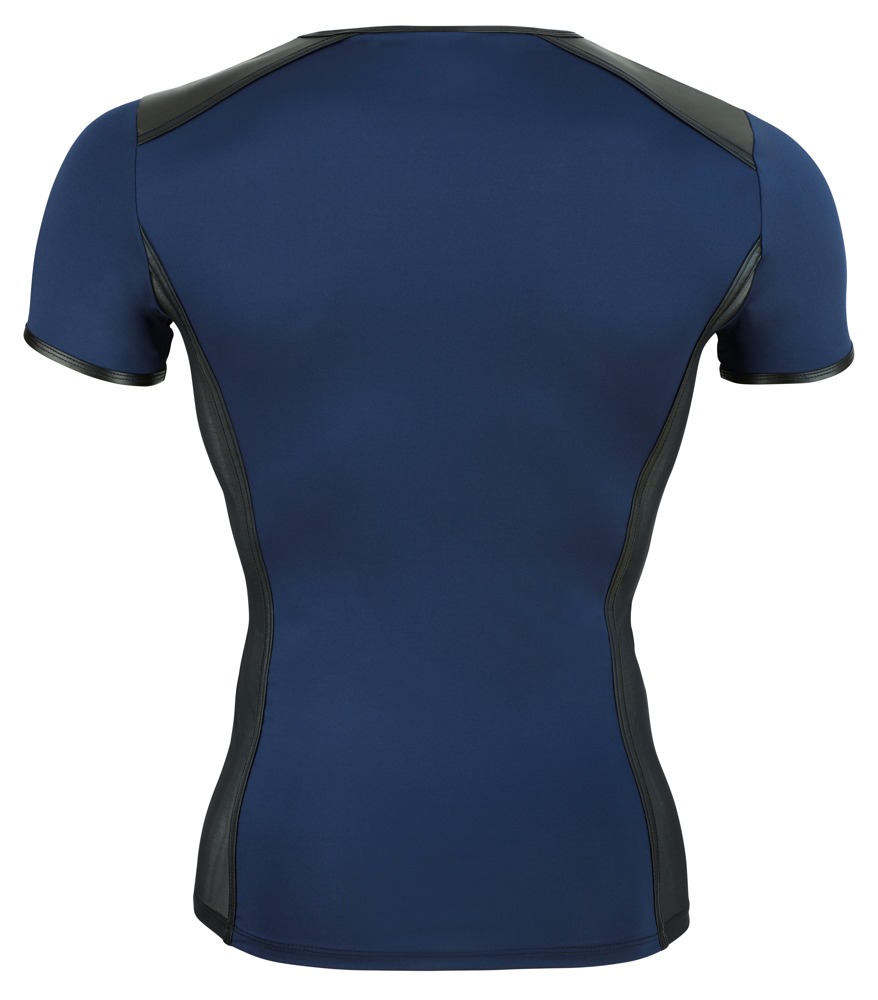 Eye-catching shirt in blue/black. The shirt stands out from the rest because of the extremely stretchy combination of opaque, soft microfibre and transparent powernet with trendy matte look details.