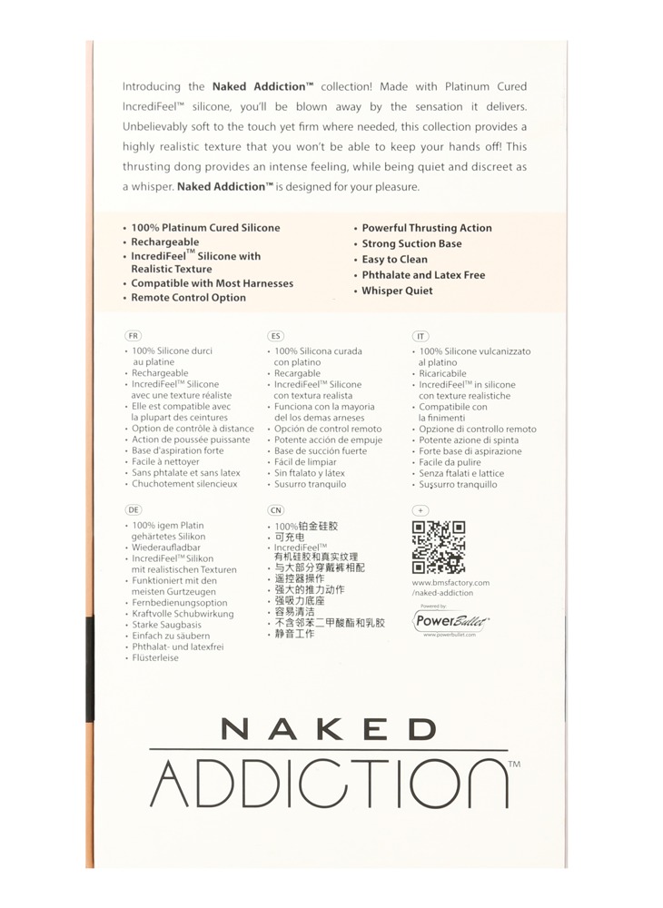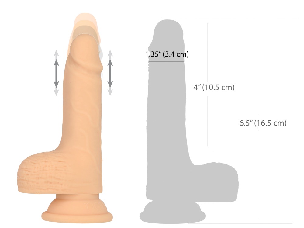 Flexible thrusting dildo 6.5" Thrusting Dong RC from Naked Addiction in a life-like penis design with subtle veins and pronounced glans. With a suction cup below the testicles that sticks firmly and safely to smooth surfaces, enabling hands-free fun. This makes the dildo compatible to strap-ons and harnesses.