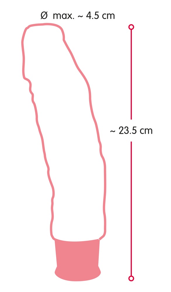 The realistic, flexible vibrator Big Vibe from Nature Skin is in a realistic penis design and it has pronounced veins and large glans. The 8 diverse vibration modes can be easily adjusted with the button on the toy.
