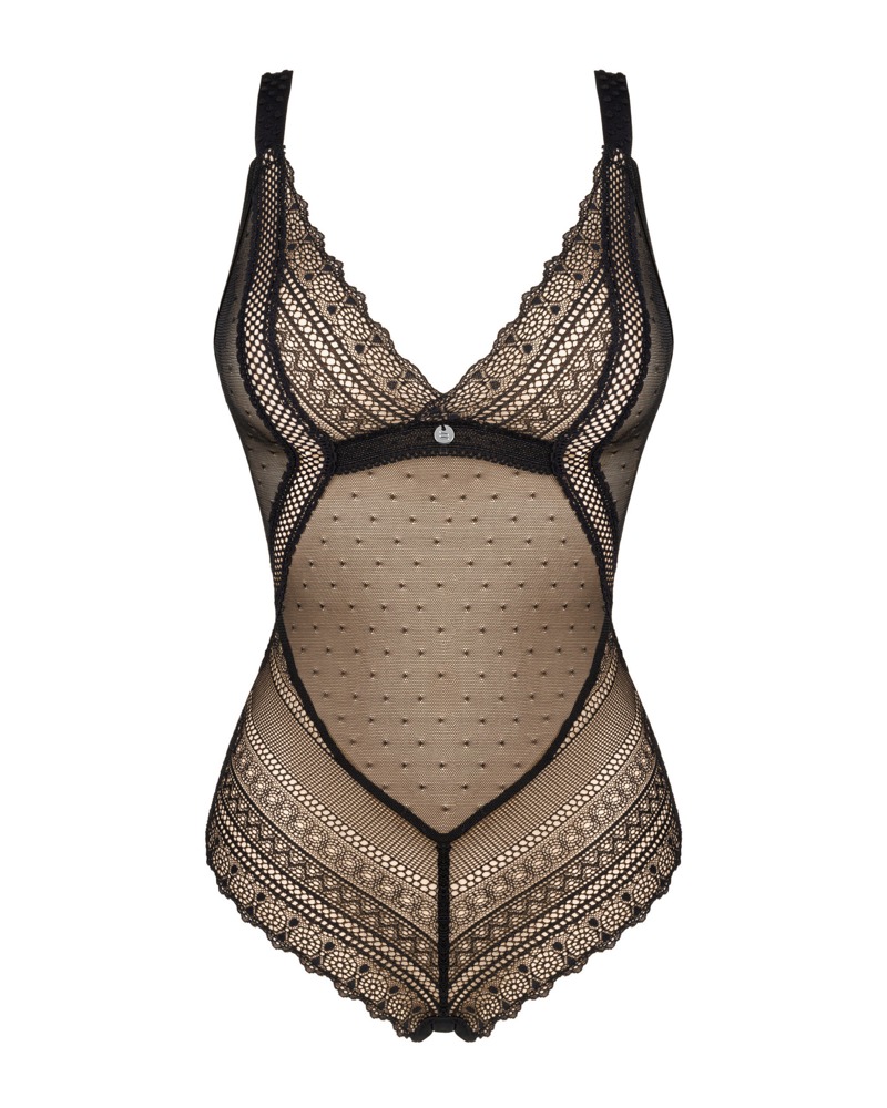 This teddy from the Estiqua collection tempts with its delicacy and impresses with an exceptionally feminine cut! The slightly translucent material stimulates the imagination and will certainly boost the atmosphere of shared moments. Ignite your senses and emphasise all the assets of your figure, and we guarantee that a hot evening will end extremely pleasantly!
