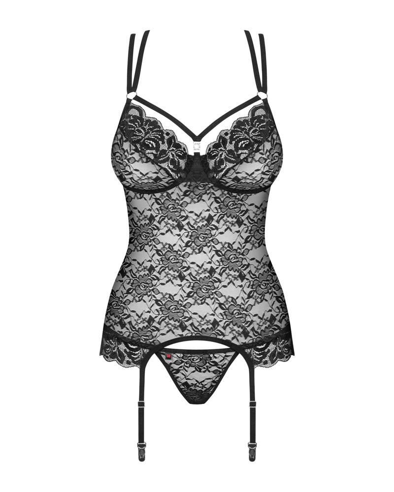 Are you a fan of lace? We have something for you! Extremely sensual corset decorated with straps and shiny accessories – it will look amazing on you! It will also heat up the atmosphere for you and him…