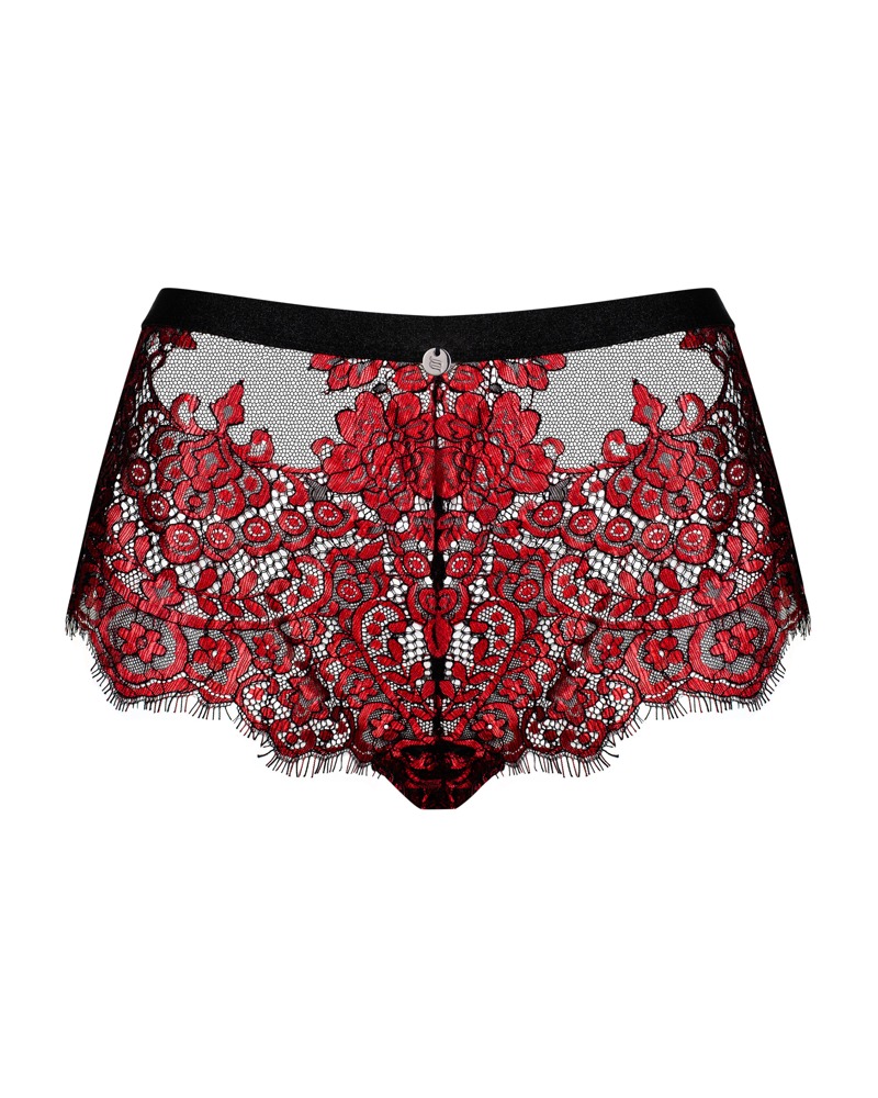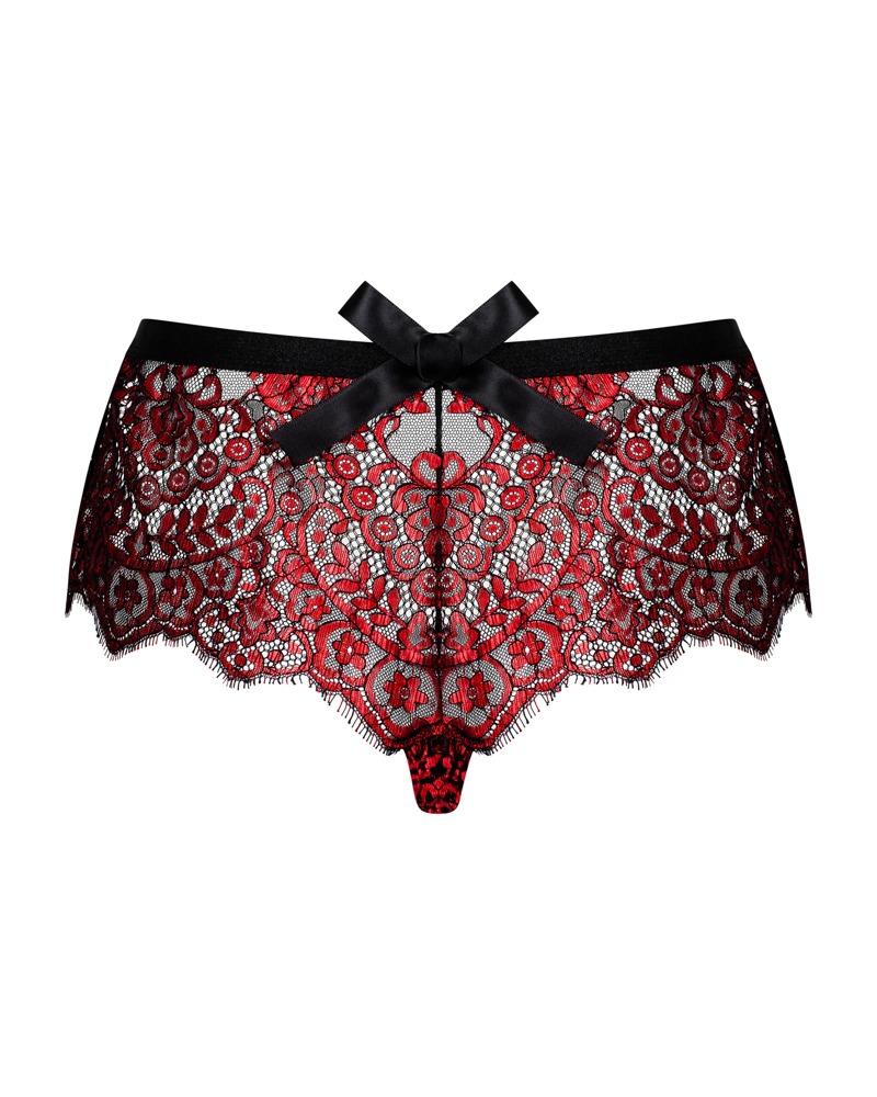 Are you dreaming of lingerie that will perfectly emphasize your femininity? We have something that will make you look very sexy – the Redessia shorties. We assure you that your charmingly bow-decorated back and attractive red lace will warm up your winter evenings... and you’ll be tempting him with captivating translucent black and your lusciously emphasized buttocks.