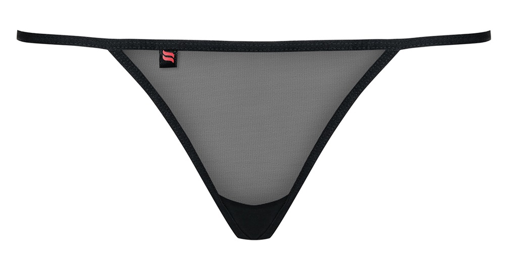 Captivating string Luiza from Obsessive with a simple front and a delicate embroidery at the back. With stretchy straps on both sides. Black.
