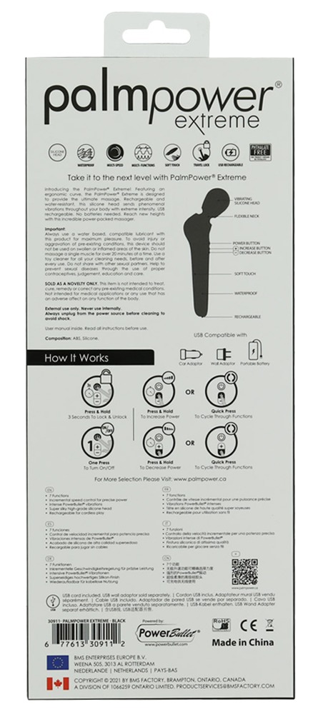 An ergonomically shaped massage wand with a flexible head, 7 powerful vibration modes and a multi-speed mode. With a practical travel lock. It turns itself off automatically after 15 minutes. It can be recharged with the included USB cable. Waterproof.