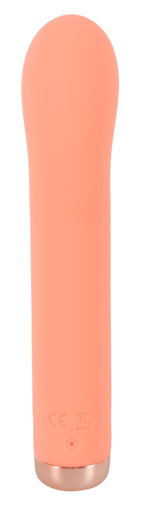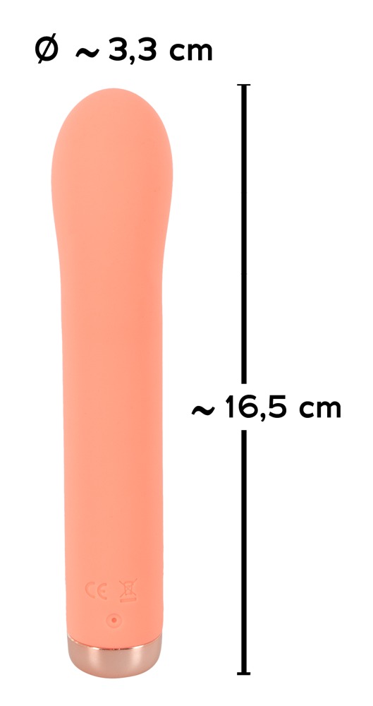 Beautiful, pastel-coloured Mini G-Spot Vibrator from peachy! with a perfectly curved design and a plump head for spot-on G-spot or P-spot stimulation. 10 vibration modes provide diverse pleasure during vaginal and anal play. They can be adjusted up and down at the push of a button. The high-quality silicone with Soft Touch texture feels great against the skin during pleasure and play. Rechargeable – includes a USB cable.