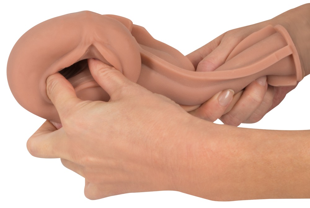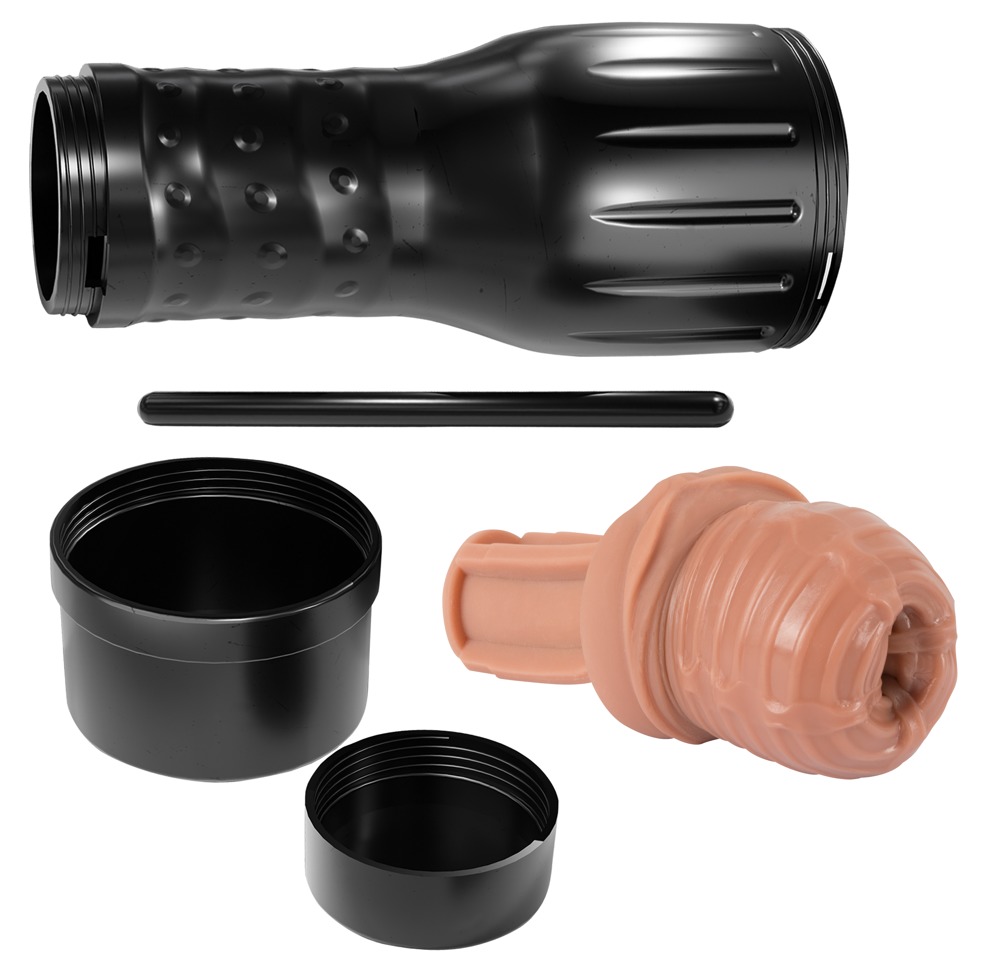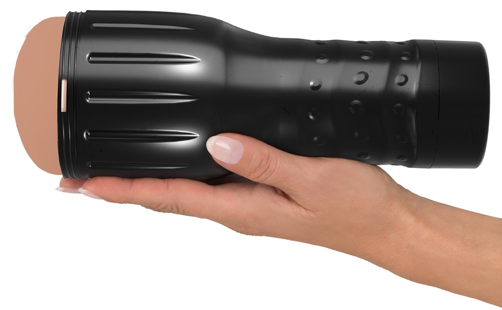Masturbator in a vagina shape in a discreet, easy-to-hold case with a protective lid at either end. The pleasure canal is made out of skin-like material. It also has pronounced dots and grooves inside that provide an intense and orgasmic massage during a hand job. The masturbator open at the back and can be removed from the case for cleaning. The stick inside supports the sleeve and prevents it from sticking together. It must be removed before use.