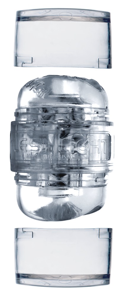 A masturbator that is open at both ends. The masturbator has a replica of erotic star Riley Reid's vagina and anus. The inside of the masturbator has a stimulating dotted and grooved texture. The case can be open at both ends and the sleeve can be removed for quick and hygienic cleaning. The openings at either end as well as the sturdy part in the middle of the sleeve means that it won't slip out of someone's hand and can also be used during a blow job too.