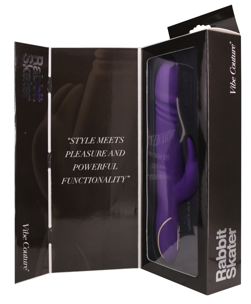 This beautifully designed purple rabbit vibrator provides pure pleasure. It has a velvety soft surface made out of silicone that feels extremely realistic. Not only does it look good because of its wonderful shape and decorative silver-coloured parts, but it can also do its job well! There is a motor inside the small rabbit-shaped clitoris stimulator with nose and movable ears. The motor provides powerful vibrations (with 7 different patterns). However, the real highlight is a bit further up: the round G-spot tip with stimulating grooves underneath has an integrated thrust and vibration function. The functions have three speeds and intensities. You can also enjoy the Rabbit Skates in the bath or shower because it is waterproof! A lover that just might get addictive!