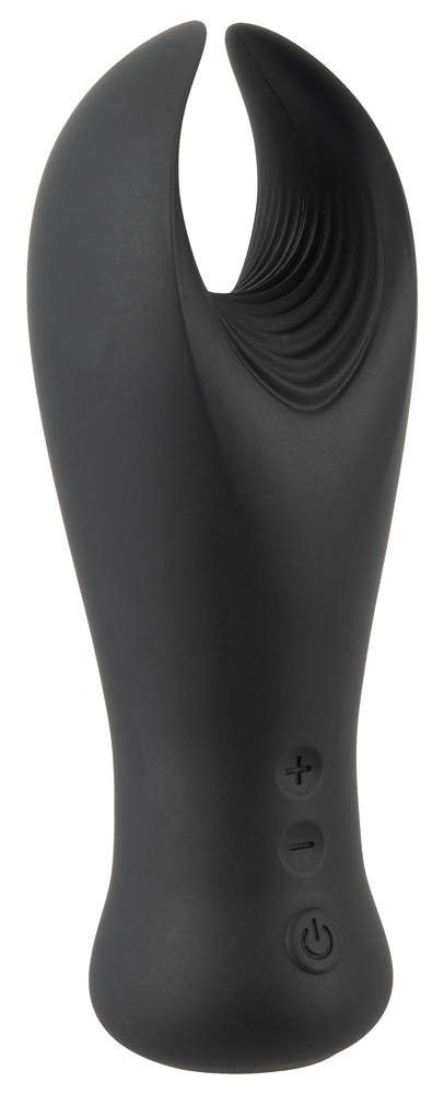 The Cock Vibrator from Rebel has flexible, fluttering vibro-wings that hold the penis in an arousing way. It then stimulates the penis and massages it intensely with its pronounced, stimulating grooves. The 10 vibration modes provide a lot of variety during a hand job. The buttons on the toy can be used to move up and down the modes.
