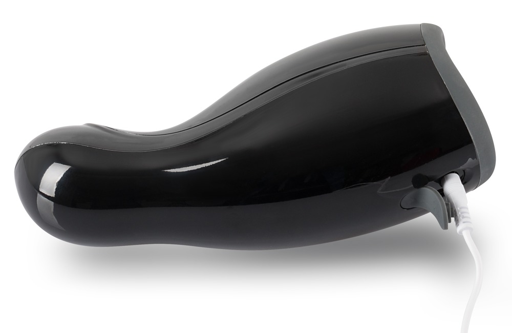 Masturbator with 3 functions. The masturbator has vibration, a warming function and an up-and-down movement. The functions can be controlled separately with the 3 buttons. Vibrations in 7 modes, up-and-down movement in 7 speeds, warming function approx. 40 °C. The sleeve is securely integrated into the masturbator and cannot be removed. It can be recharged with the included USB cable. Black. Complete length 20 cm, insertion depth 7 cm, Ø 4 cm. Silicone with a PU coating, ABS.