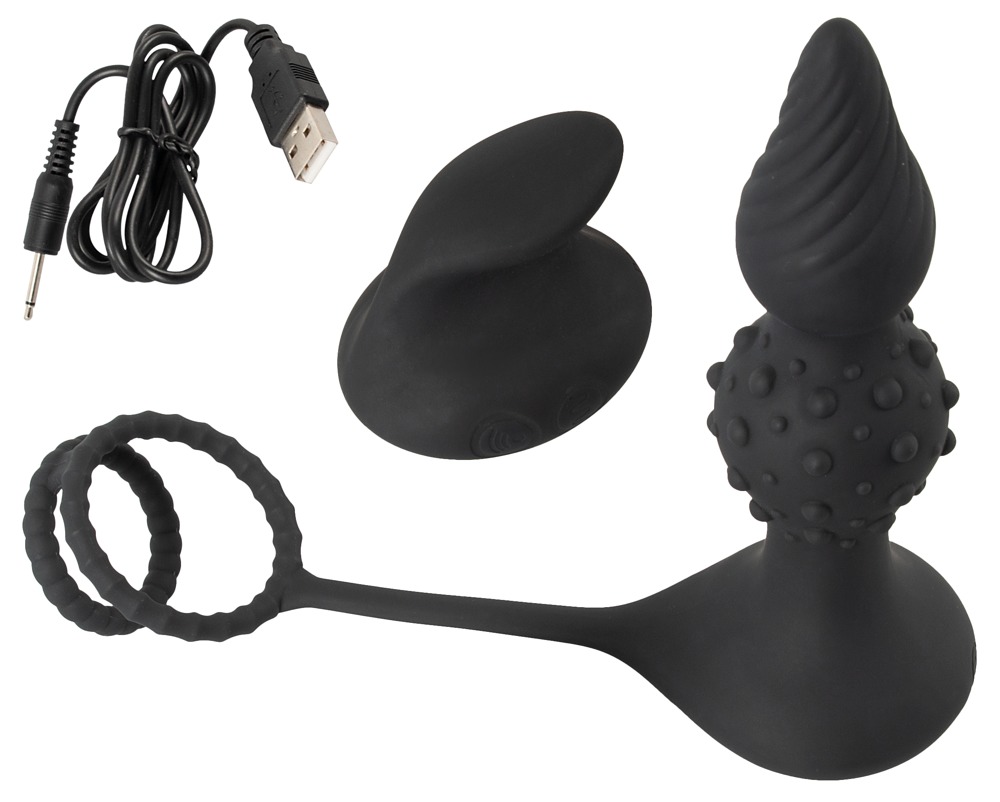The rings surround the penis and testicles firmly and can effectively support the erection thanks to the blood congestion effect. The inserted vibro-butt plug with its special dotted/grooved design and 10 diverse vibration modes provides intense stimulation of the anus at the same time. The flexible connection bar sits directly at the perineum and provides additional stimulation.