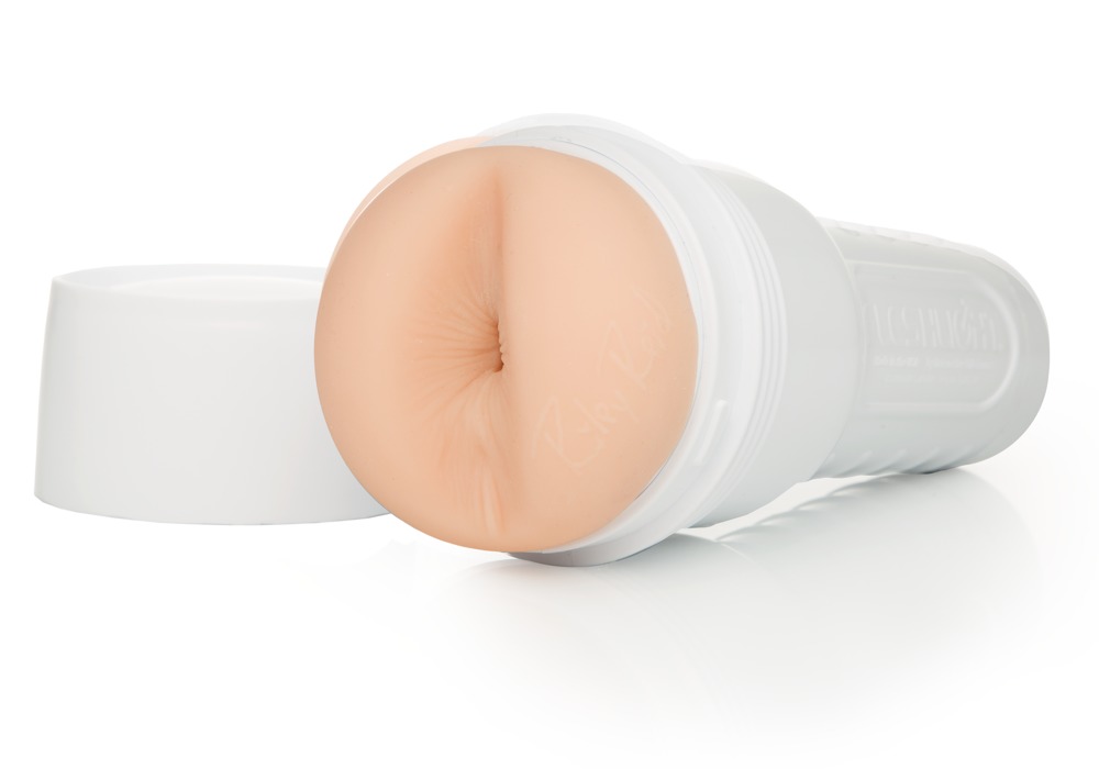 Masturbator Riley Reid Euphoria from Fleshlight with an original replica of erotic star Riley Reid's anus hole. The various textures inside Riley's tight anal canal feel amazing and are perfect for intense, orgasmic massages during a hand job. The sleeve is made out of soft, skin-like Superskin material. Riley's signature is also next to the opening. The masturbator can be easily removed from the discreet, non-slip case for cleaning. There is also a lid for the case as well.