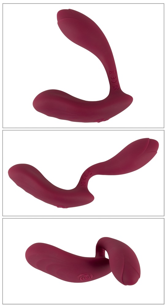 Total length 13.5 cm, insertion length G-spot vibrator 10.5 cm, clitoral stimulator 10 cm; Ø 1 cm - 3.2 cm. Weight 110 g. Silicone, PU.