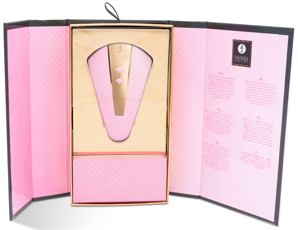 The luxurious Obi lay-on vibrator from Shunga comes in a sophisticated, elegant design with flexible tip. It not only stimulates the vulva and clitoris, but also the perineum. Ergonomically shaped to perfection and made of medical-grade silicone, the Obi nestles silky soft against the intimate area and adapts perfectly to the body. It can also be worn discreetly in panties. Exclusive comfort for maximum pleasure!