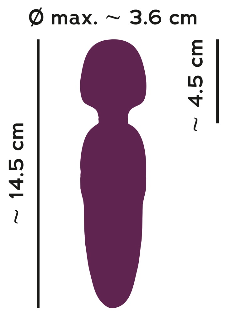 Total length 14.5 cm, massage head with neck 4.5 cm long, massage head Ø 3.6 cm.