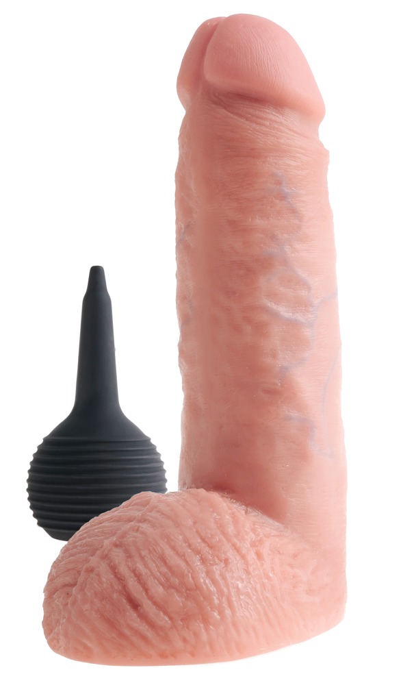 This extremely realistic dildo can squirt like the real thing. The pump ball gets filled with liquid and the shaft then gets inserted. When pressure is exerted on the pump ball, the chosen liquid starts squirting out of the glans. Includes 59 ml Jizzle Juice (fake sperm) and 29 ml of toy cleaner.