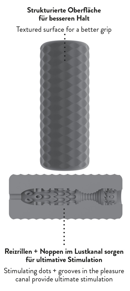 Handy squeezable masturbator 03 from Stroker in a discreet look with a non-slip textured outer shell. The stretchy pleasure tunnel made of skin-like soft material has pronounced stimulating dots and grooves on the inside for an intense massage during a hand job. The pressure can be easily varied for a wonderfully gripping sensation.