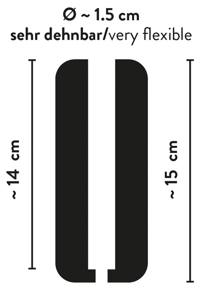 Complete length 15 cm, insertion depth 14 cm, inner Ø 1.5 cm (stretchy).