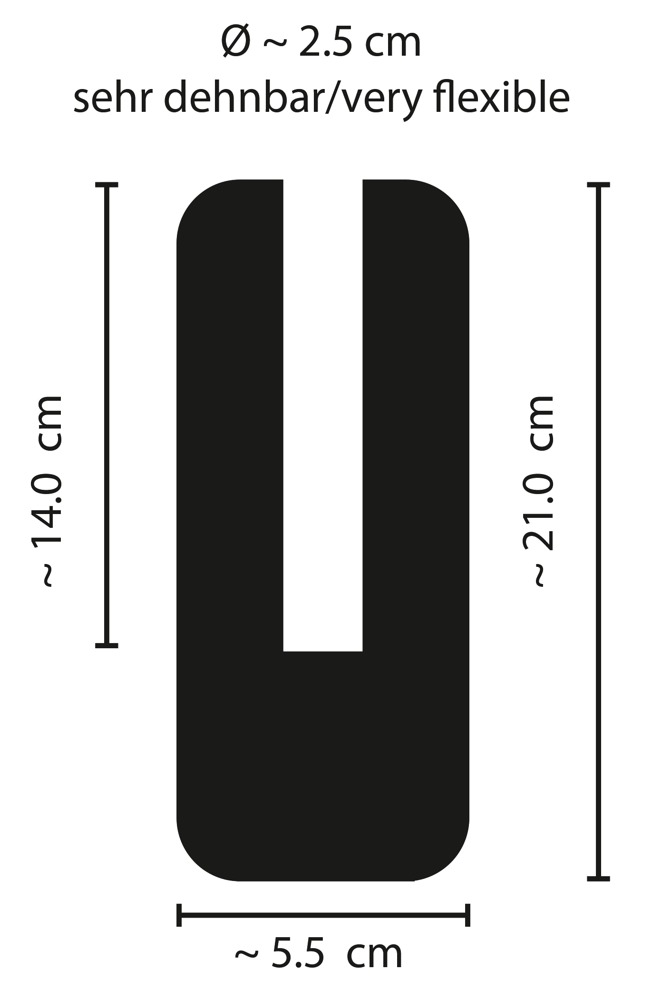 Complete length 21 cm, insertion depth 14 cm, inner Ø 2.5 cm (flexible).
