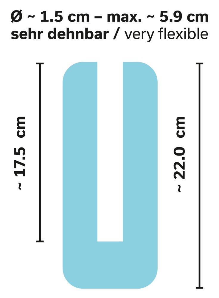Total length 22 cm, insertion depth 17.5 cm, inner Ø 1.5 cm (can be stretched to max. 5.9 cm).