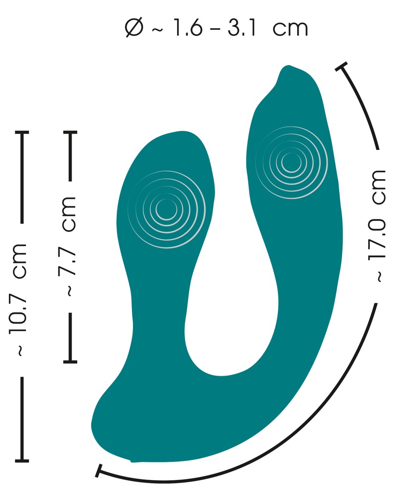2 quiet motors provide 10 discreet vibration modes in each arm, for intense stimulation inside and out at the same time. With the practical remote control, the versatile modes can be easily controlled - even by a partner. The vibrations can also be controlled directly on the toy at the touch of a button.